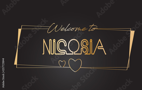 Nicosia Welcome to Golden text Neon Lettering Typography Vector Illustration.