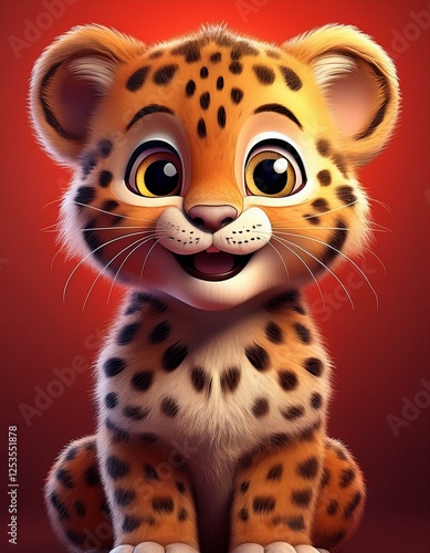 Niedliches Leopardenbaby, roter Hintergrund
