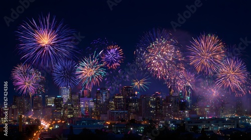 night city fireworks over 2026 glowing on horizon