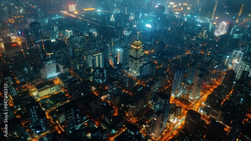 Night city top view. Illustration generated by ai