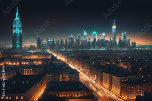 night cityscape skyline view of downtown city
