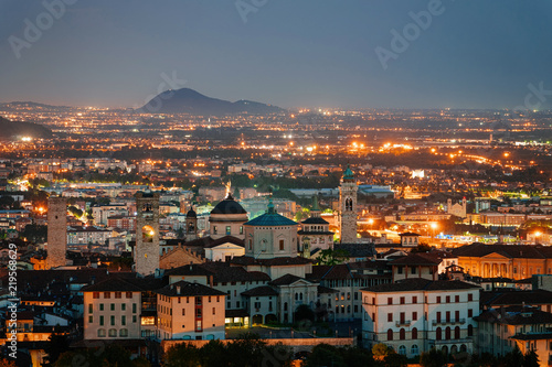 Night cityscape with Basilica of Santa Maria Maggiore Bergamo Italy