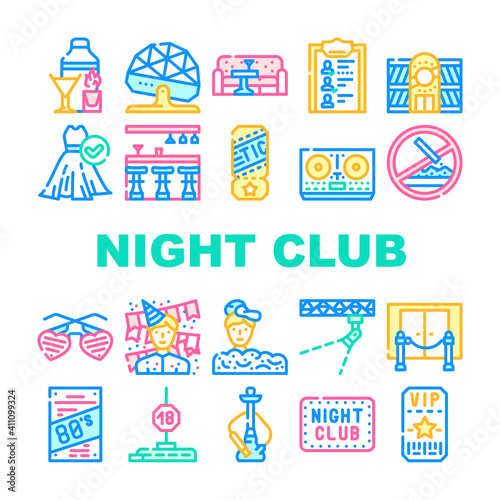 Night Club Dance Party Collection Icons Set Vector