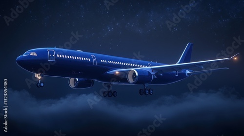 Night Flight: Airplane above Clouds under Starry Sky