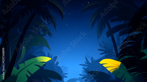 Night Jungle Path, Tropical Stars, Background Illustration