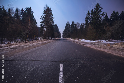 Night landscape of winter road.