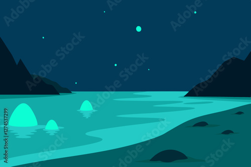 night landscape with sea and moon