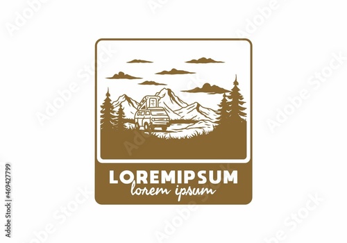 Night mountain camper van illustration drawing