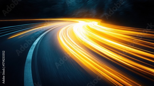 Night road curves with streaked light