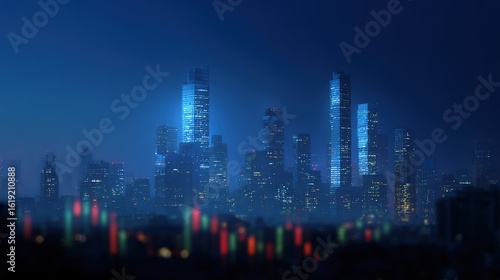 Night Skyline and Financial Landscape: A mesmerizing image captures the essence of a bustling city at night, intertwining with a financial motif.