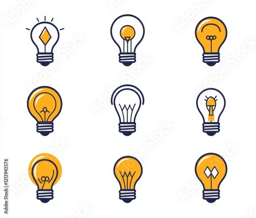 Nine diverse lightbulb icons; ideas, innovation, solutions.