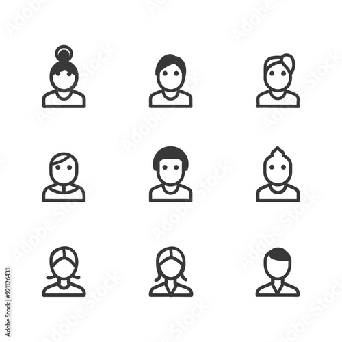 Nine Simple Line Icons Representing Diverse Human Profiles