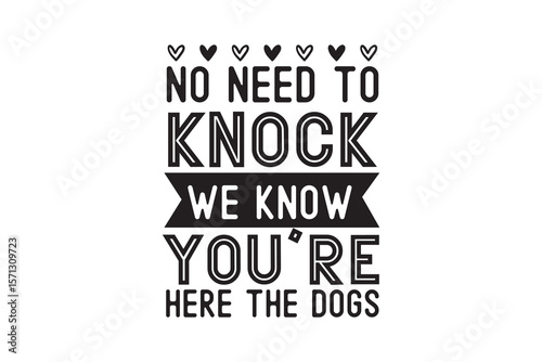 No Need to Knock We Know You’re Here – Funny Doghouse Sign Typography Design