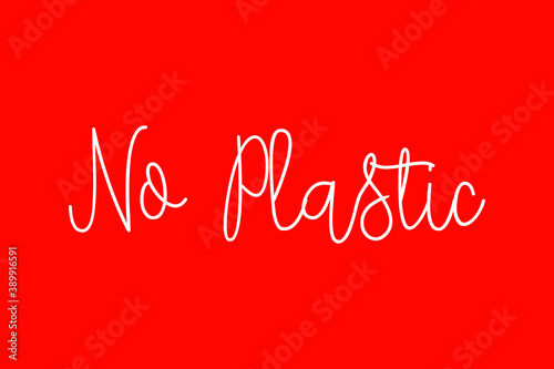 No Plastic Cursive Typography White Color Text On Red Background