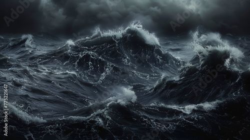 Nocturnal Ocean Fury, Waves Crashing Beneath Ominous Night Sky