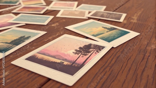 Nostalgic Polaroid Frames on Vintage Wooden Background —AI GENERATED