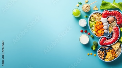 Nourishing Gut Health - Hand-Drawn Digestive System Diagram with Healthy Food Filling and Copy Space for Text