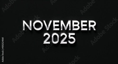 november 2025 silver shining shiny solid metallic lettering on plain black background