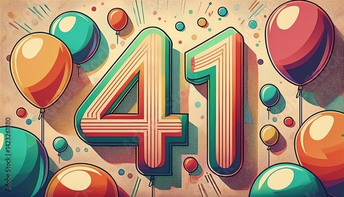 Number 41 with balloons. Retro style illustration for forty-first birthday or anniversary