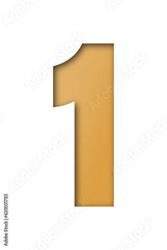 number cut paper 1 orange isolated on transparent background
