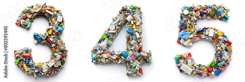 Numbers 3, 4, 5. Alphabet Made of Various Types of Waste: Symbol of Waste