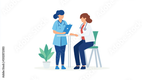 nurse and doctor are discussing patient health in medical setting, with clipboard and stethoscope visible, conveying sense of professionalism and care