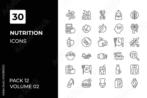 Nutrition icons collection. Set vector line with elements for mobile concepts and web apps. Collection modern icons.