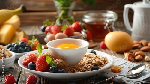 Nutritious Breakfast with Berries, Nuts, and Honey