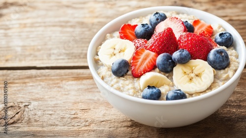 Oatmeal with Strawberries, Blueberries, and Bananas