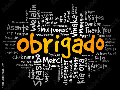 Obrigado (Thank You in Portuguese) Word Cloud in different languages