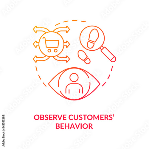 Observe customers behavior red concept icon. Tracking activities research. Shopping interaction. Security camera in retail abstract idea thin line illustration. Vector isolated outline color drawing