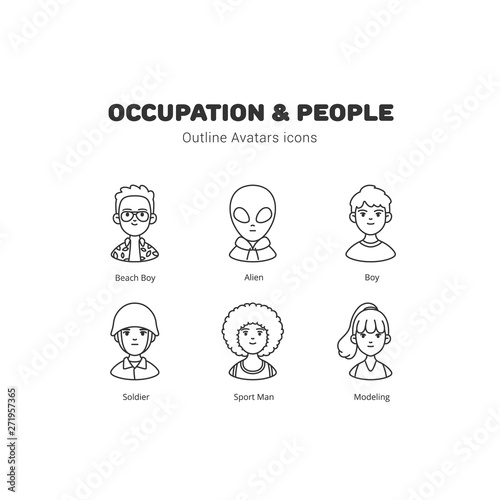 Occupation and people avatar outline icons