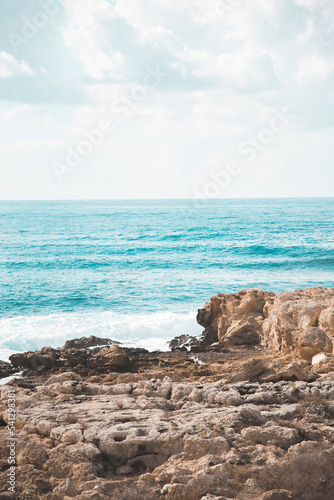 Ocean, sea with cliffs, waves in the sea, coastline, summertime, beach landscape