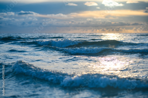 Ocean seascape and waves splashing. Ocean Wave. Scenic seascape. Waves at beach. Waterscape for background.