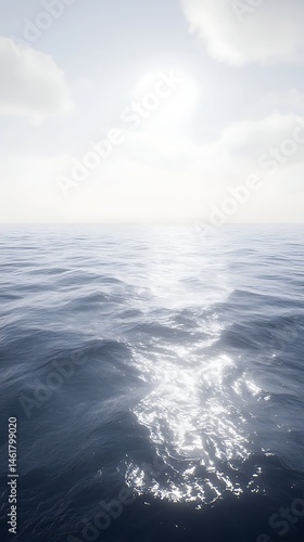 Ocean vista sunlight reflecting on calm waters under a bright sky