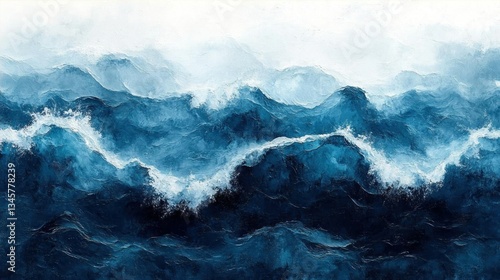 Ocean Waves Abstract Blue Sea Painting Artwork