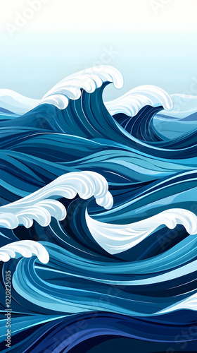 Ocean waves crashing, serene seascape, calming blue water, background for relaxation