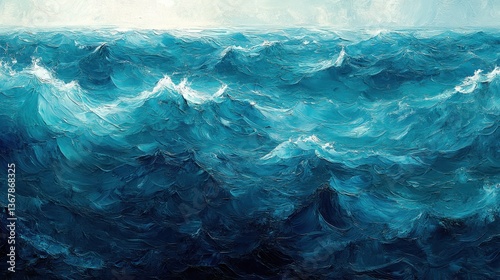 Ocean waves, stormy seascape, dramatic painting, nature background, artwork