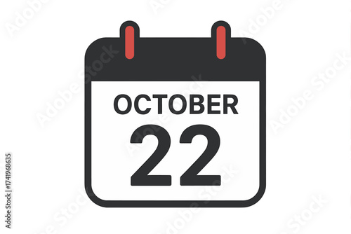 October 22 calendar icon. Twenty-second day of the month. Date symbol for schedule, appointment, reminder, event. Clean vector illustration for web, app, print design.