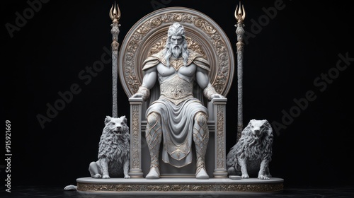 Odin, the Norse Allfather, majestically seated with his wolves by his side, representing divine power and wisdom in ancient mythology