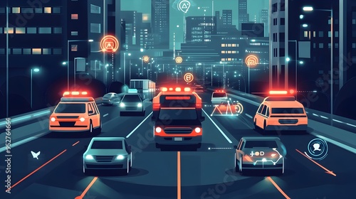 of an IoT powered emergency vehicle system navigating through a smart city s digital transportation network with real time data analytics autonomous control
