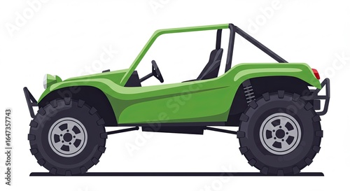 Off Road Buggy Green All Terrain Vehicle on White Background