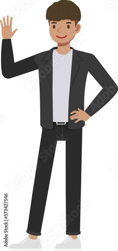 Office man wear black suit character design. Presentation in various action with emotions, running, standing and walking.