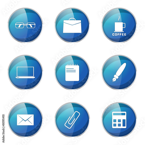 Office Work Blue Vector Button Icon Design Set