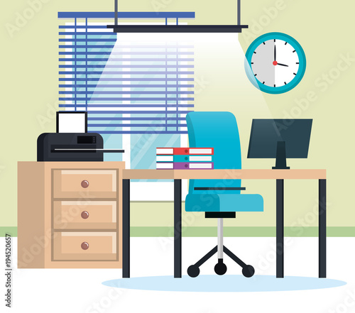 office workplace scene icons vector illustration design