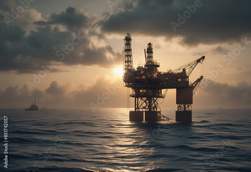 oil well in the middle is the sea in minimal style