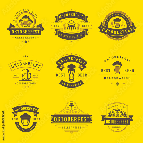 Oktoberfest badges and labels set vintage typographic design templates vector illustration.