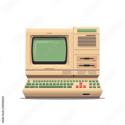 Old computer with a keyboard. Vector illustration cartoon flat icon isolated on white background.