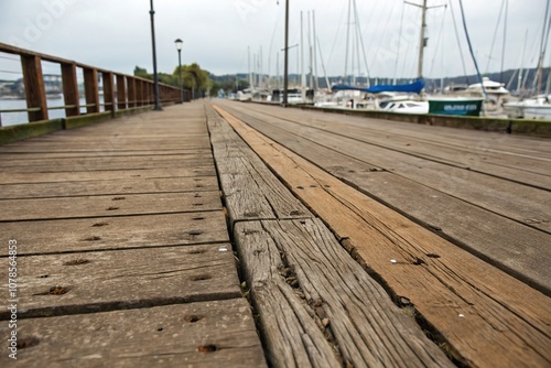 Old Harbour Dock Floorboards in Perspective, Brown Wooden Decking with Gaps, Perfect for Coastal or Nautical Themes with Copy Space for Text or Graphics