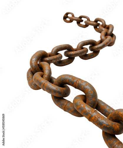 Old Heavy Rusty Metal Chain with Corrosion and Grunge Texture, Symbol of Strength and Decay, Isolated on Transparent and White Background